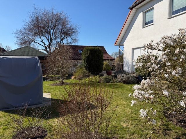 Laage, eine charmante Stadt im Herzen von Mecklenburg-Vorpommern, zeichnet sich durch ihre ruhige Wohnlage, eine gute Infrastruktur und eine angenehme Mischung aus Natur und städtischem Komfort aus. Schulen, Einkaufsmöglichkeiten und Freizeitangebote sind in wenigen Minuten erreichbar, während die Nähe zu größeren Städten wie Rostock für zusätzliche Flexibilität sorgt. Dieses gepflegte Einfamilienhaus aus dem Jahr 1996 bietet auf ca. 140,78 m² Wohnfläche ein großzügiges und komfortables Wohnambiente. Das Erdgeschoss besticht durch einen offenen Küchen-, Ess- und Wohnbereich, der dank großer Fensterflächen lichtdurchflutet und sehr freundlich wirkt. Ein behaglicher Kamin sorgt für gemütliche Stimmung. Der direkte Zugang zur Terrasse und zum Garten erweitert den Wohnraum nach draußen und lädt zum Verweilen im Freien ein. Zusätzlich bietet das Erdgeschoss ein praktisches Arbeitszimmer sowie ein Badezimmer mit Dusche. Alle Fenster auf dieser Etage sind mit elektrischen Außenrollläden versehen. Im Obergeschoss befinden sich drei Schlafzimmer, eines davon mit separatem Ankleidezimmer. Zudem gibt es ein weiteres Badezimmer mit Badewanne. Auf beiden Etagen sorgt eine Fußbodenheizung für angenehme Wärme. Die Böden im Erdgeschoss sind gefliest, im Obergeschoss ist Laminat verlegt. Der vollunterkellerte Bereich des Hauses bietet umfangreiche Nutzflächen: einen Waschraum, Werkstatt, Heizungsraum, Vorratsraum sowie einen Wellnessbereich mit Sauna, Ruhebereich, Dusche und WC. Auch der Keller ist gefliest. Das Grundstück ist ca. 717 m² groß und verfügt über einen Pavillon, der zum entspannten Verweilen im Freien einlädt. Ein Doppelcarport mit angebautem Schuppen schafft praktische Stellplätze und zusätzlichen Stauraum. Insgesamt präsentiert sich dieses Einfamilienhaus als durchdachte und gepflegte Immobilie mit großzügigen Räumen, hochwertiger Ausstattung und einem schönen Grundstück – ideal für Familien oder Paare, die ein komfortables Zuhause in ruhiger Lage suchen.