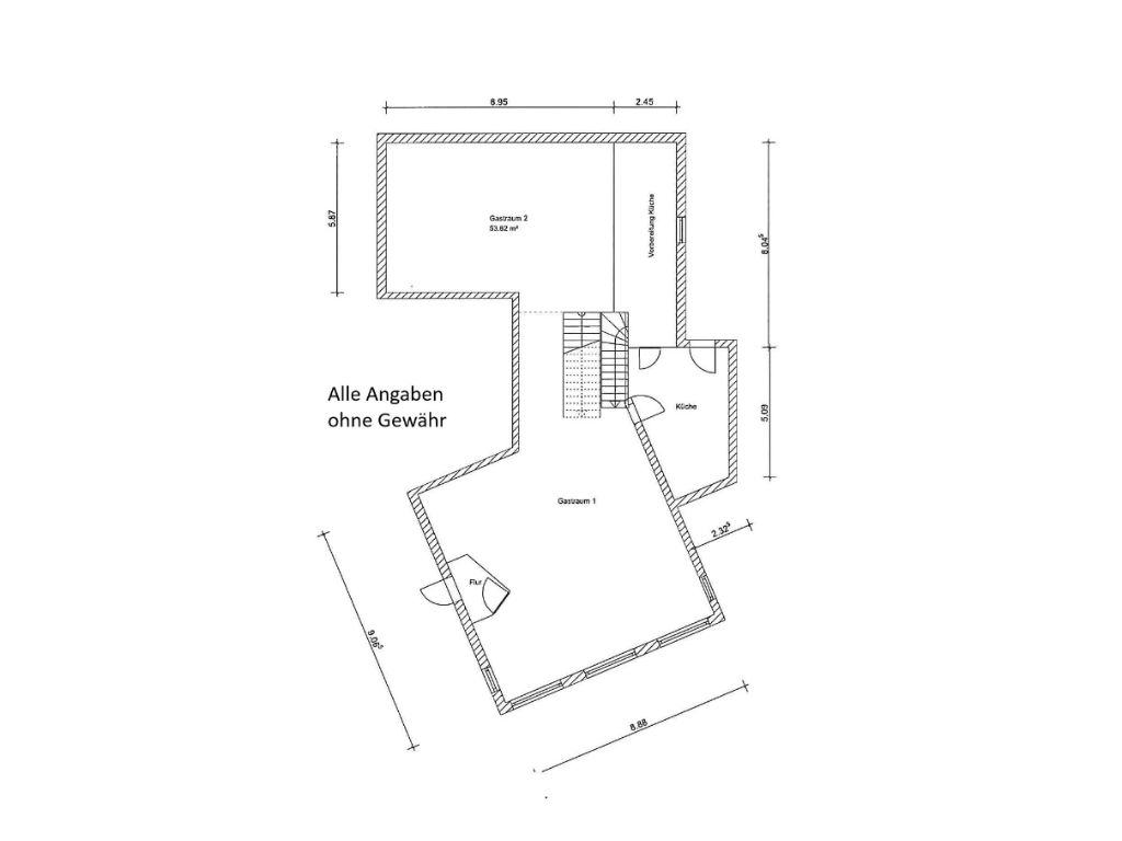 Diese großzügige Gewerbefläche mit einer Nutzfläche von ca. 270,17 m² bietet ideale Voraussetzungen für den Betrieb eines Restaurants mit Wohlfühlcharakter. Die durchdachte Raumaufteilung, die vielseitigen Nutzungsmöglichkeiten und der charmante Außenbereich schaffen die perfekte Basis für ein erfolgreiches Gastronomiegeschäft. Die ausgeschriebenen Räumlichkeiten empfangen Gäste mit einem einladenden Eingangsbereich und einem traditionell-gemütlichen Gastraum, der zum Verweilen einlädt. Vom Gastraum aus gelangen die Gäste direkt auf die Terrasse, die den Charme des Innenbereichs harmonisch ergänzt. Ein zusätzlicher Gästesaal bietet ausreichend Platz für größere Gesellschaften, Feiern oder Veranstaltungen – ideal, um ein breites Publikum anzusprechen. Ein separater Lagerraum steht ebenfalls zur Verfügung und kann bei Bedarf flexibel in einen weiteren Gästebereich umgewandelt werden. Ergänzt wird das Raumangebot durch ein separates Getränkelager, ein geräumiges Kühlhaus sowie eine Küche, die effiziente Arbeitsabläufe im gastronomischen Alltag ermöglichen. Sechs Gästeparkplätze stehen zur Verfügung und sorgen für eine bequeme Anreise. Diese Fläche vereint Charme, Funktionalität und Flexibilität – perfekt für Gastronomen, die eine einladende Location mit Charakter suchen. Die Gewerbefläche ist ab dem 01.04.2026 bezugsfähig.